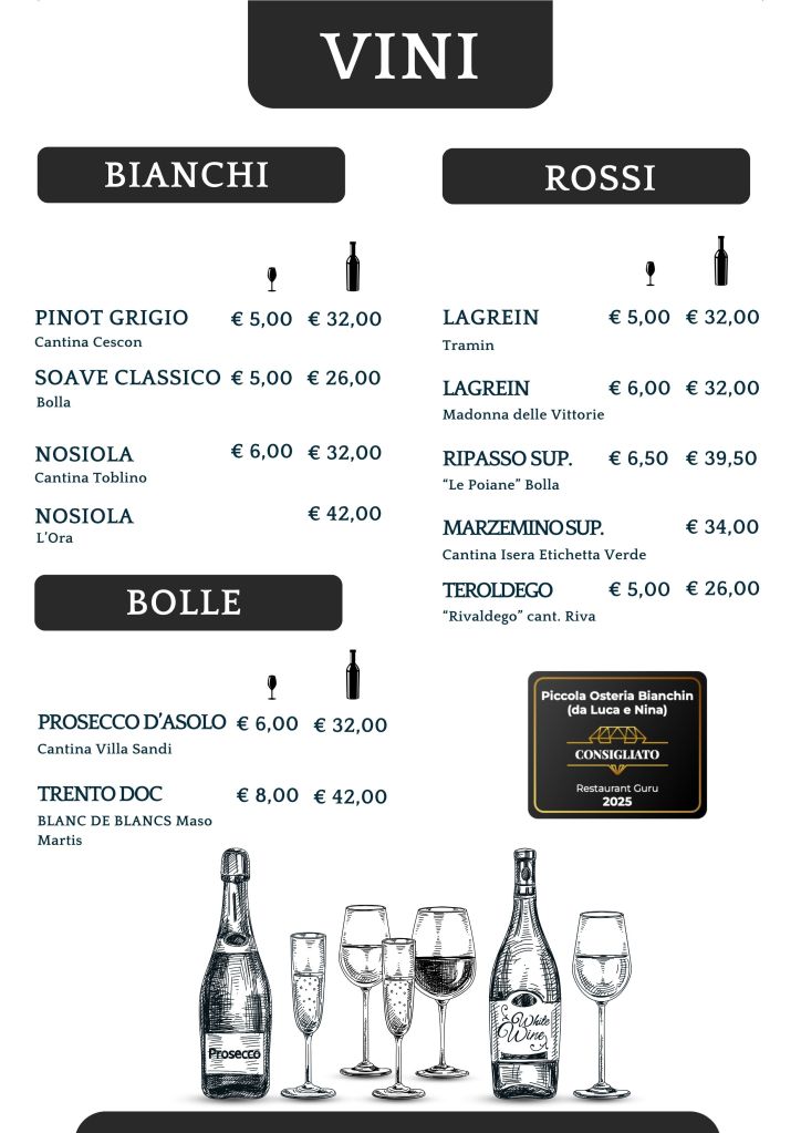 - Spritz Special (Montresor, Limoncello, Papa Nero, Skardy, P31) € 6,5