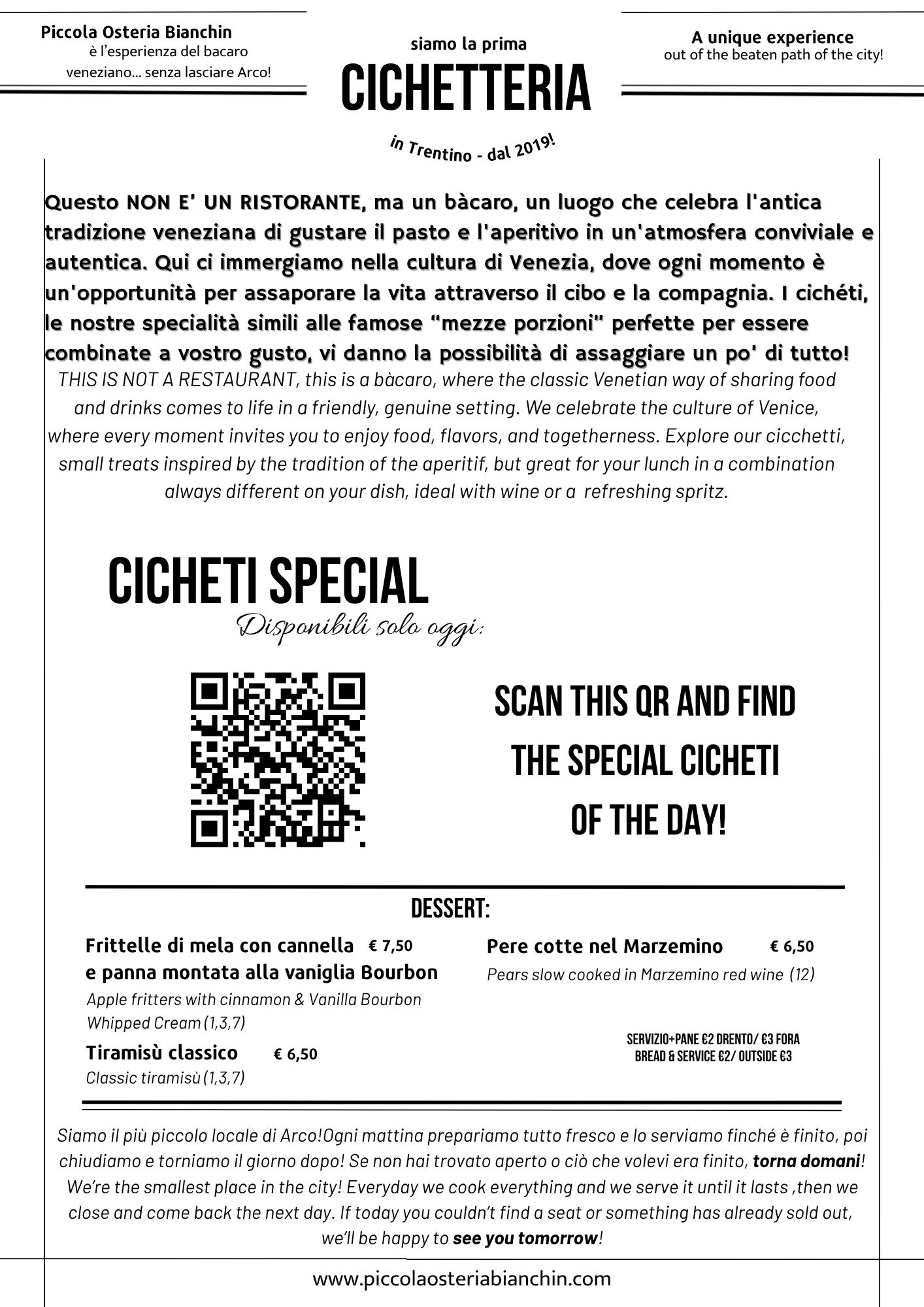 Italian Comfort Food from the heart of Venice to the heart of Arco