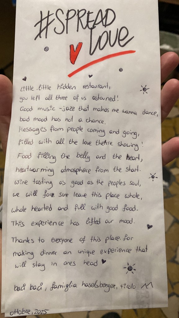 ✨ Molto tempo fa, durante i primi mesi di apertura, servivamo il pane nei sacchetti di carta. Un giorno una nostra cliente ha chiesto in prestito una penna, e ce l’ha restituita portandoci una meravigliosa dedica sul sacchetto del pane (ormai vuoto!)…