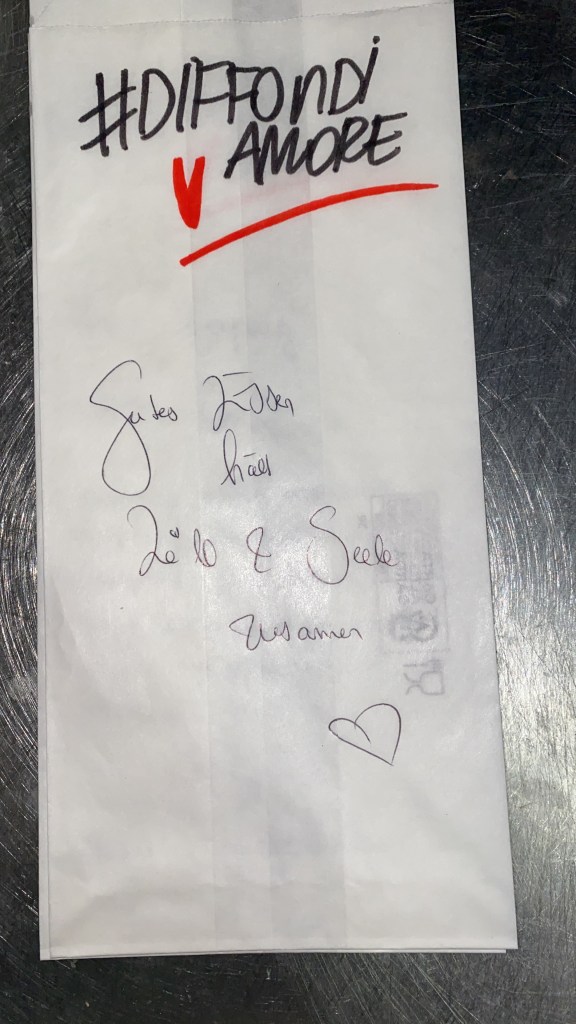 ✨ Vor langer Zeit, in den ersten Monaten nach unserer Eröffnung, servierten wir unser Brot in Papiertüten. Eines Tages bat uns ein Kunde, sich einen Stift auszuleihen, und hinterließ bei der Rückgabe eine wundervolle Widmung auf der (nun leeren!) Brottüte.